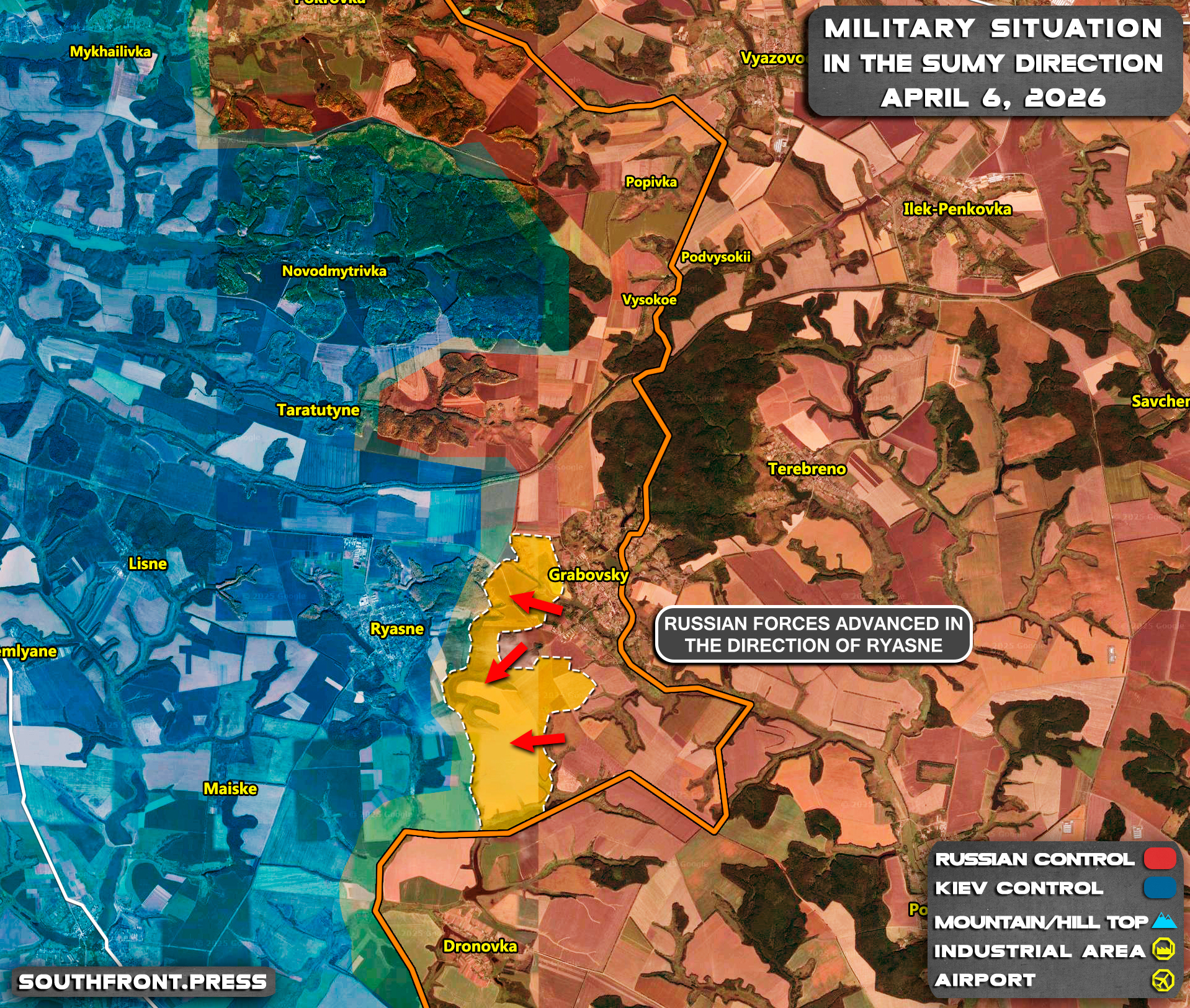 - Russian forces advanced in the direction of Ryasne.