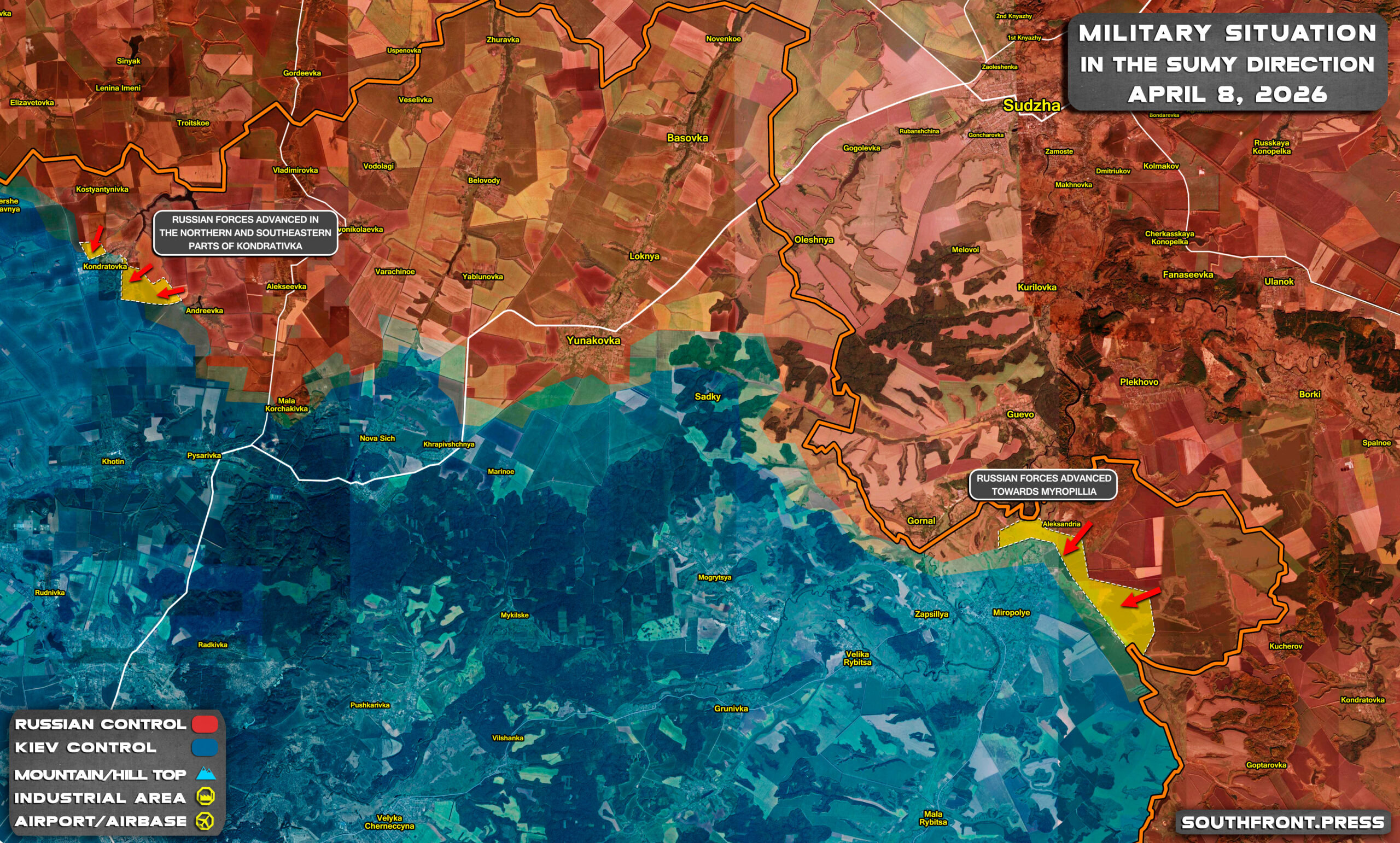 - Russian forces advanced in the northern and southeastern parts of Kondrativka.