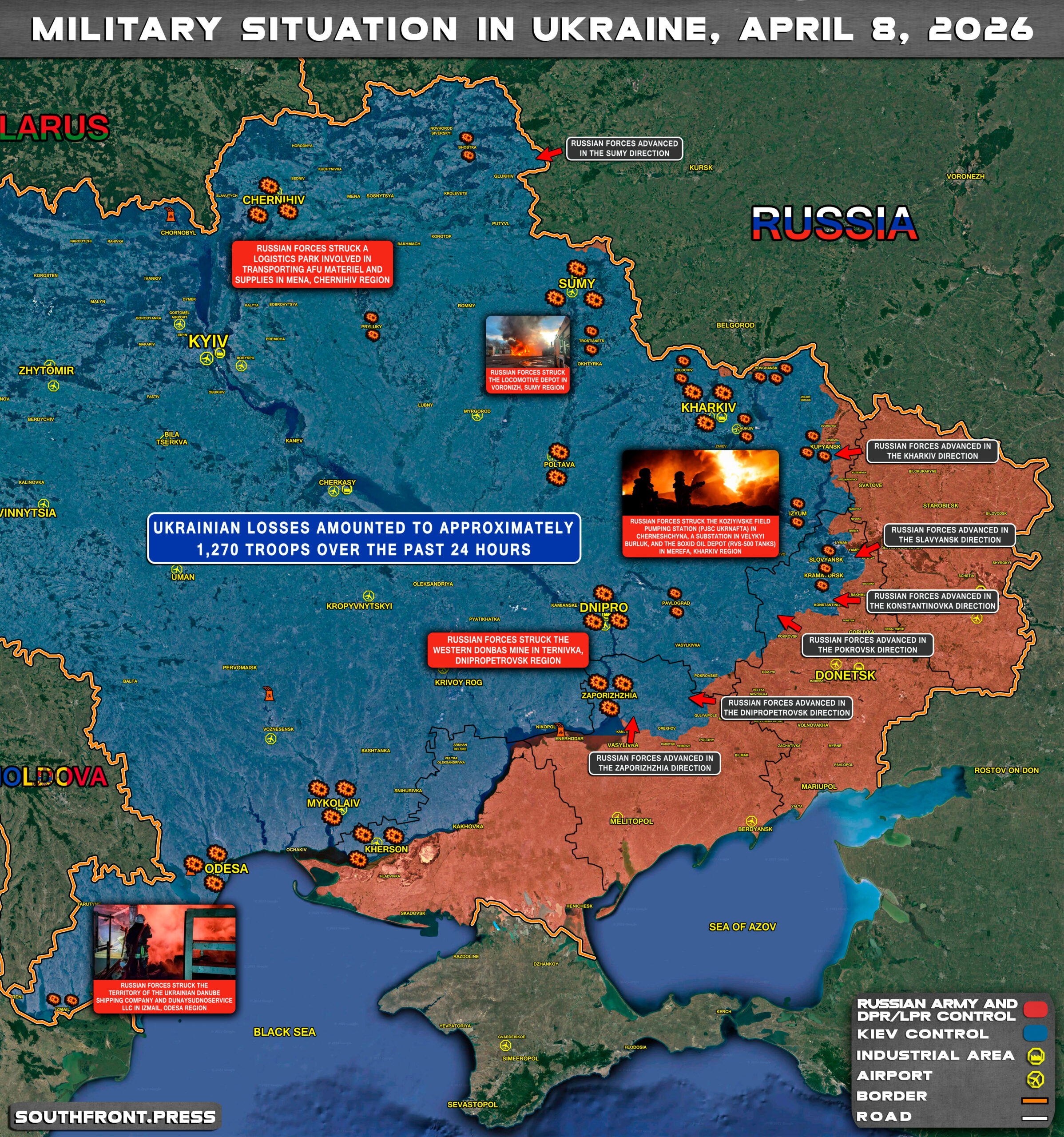 - Russian strikes destroyed targets in the Russian strikes destroyed targets in the Dnipropetrovsk,Kharkiv, Zaporizhzhia, Odesa, Sumy, Poltava, Chernihiv, Mykolayev, Kherson and the DPR regions;