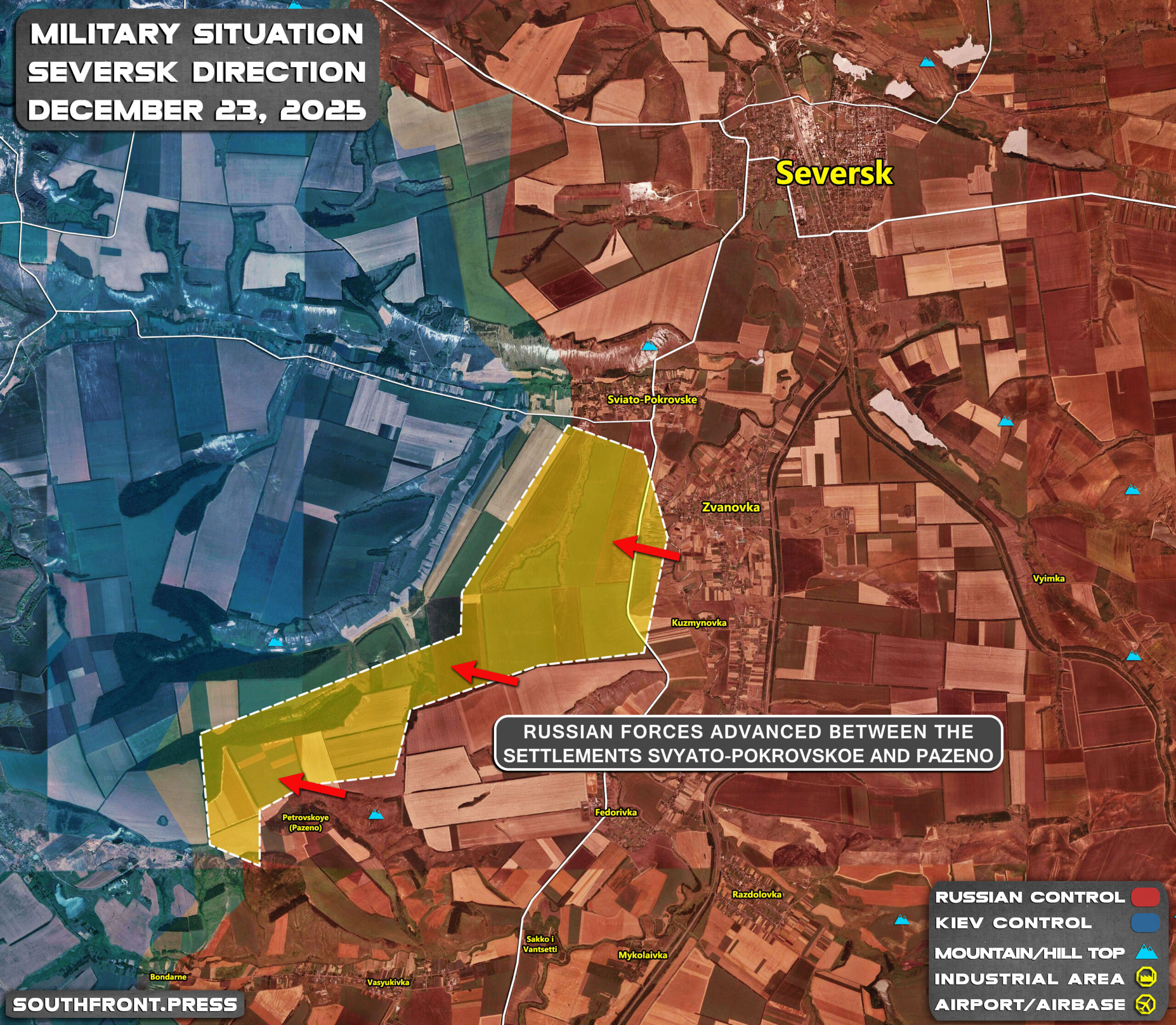 - Russian forces advanced between the settlements Svyato-Pokrovskoe and Pazeno.