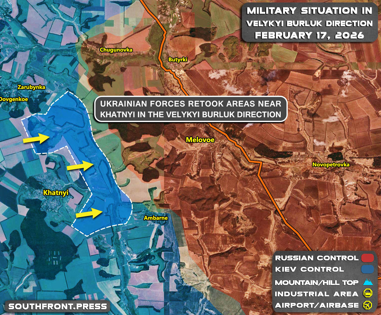 - Ukrainian forces retook areas near Khatnyi in the Velykyi Burluk direction.