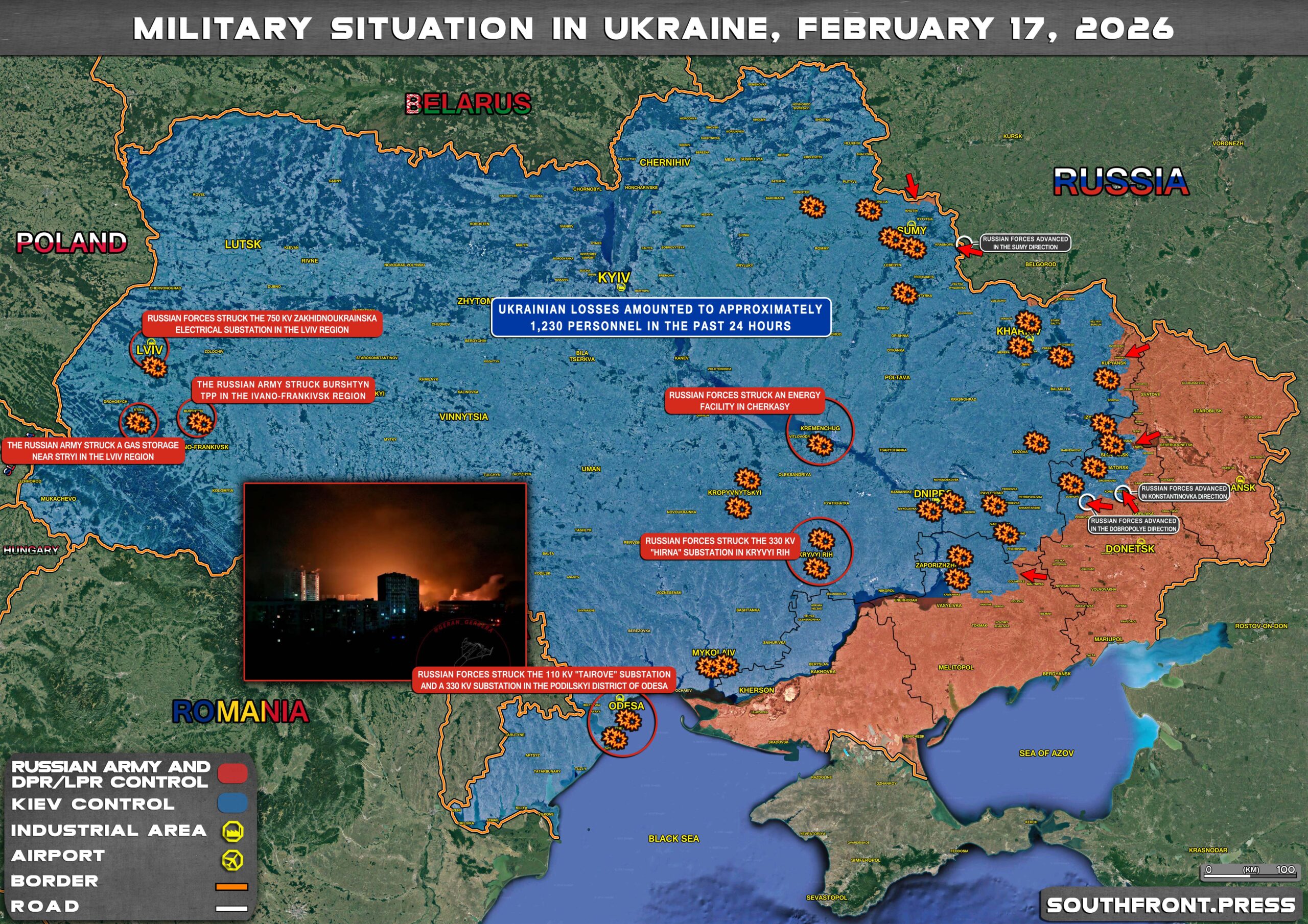 - Russian forces struck the 750 kV “Zakhidnoukrainska” electrical substation in the Lviv region;