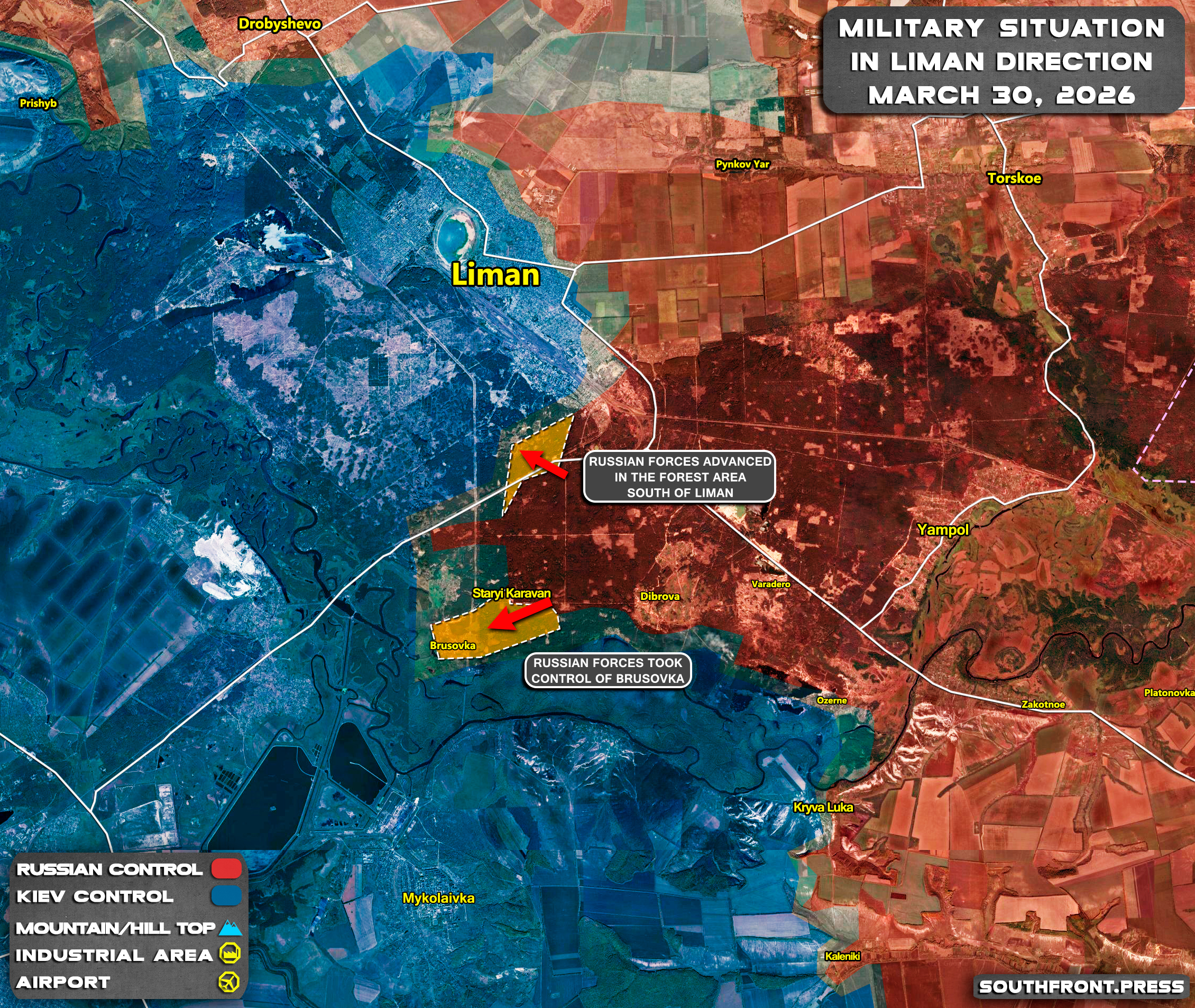 - Russian forces advanced in the forest area south of Lyman.